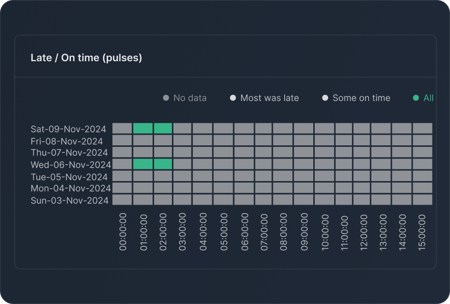 Ensure scheduled tasks like cron jobs, data syncs, and backups are running on time with precise heartbeat tracking.
