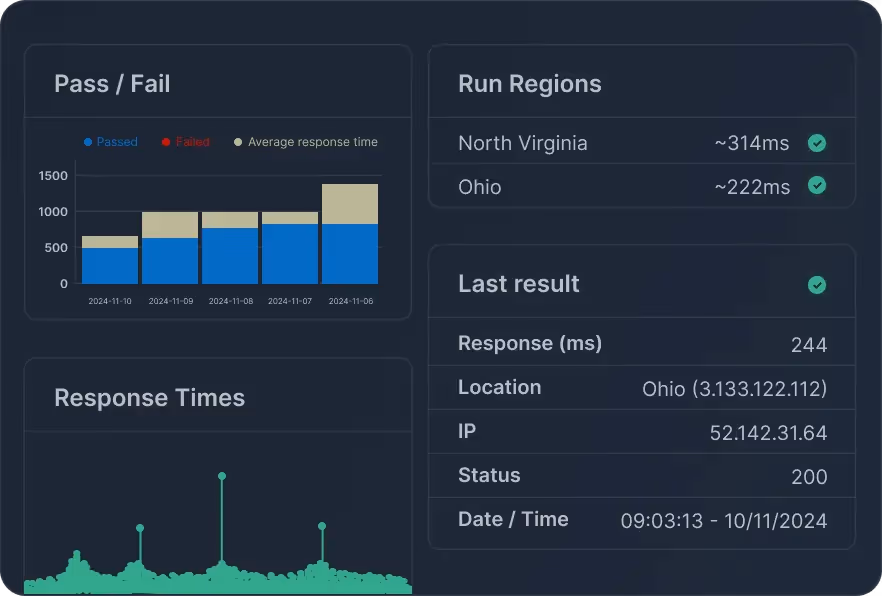 Monitor your website or API from locations around the world to catch regional outages and latency issues before your users do.